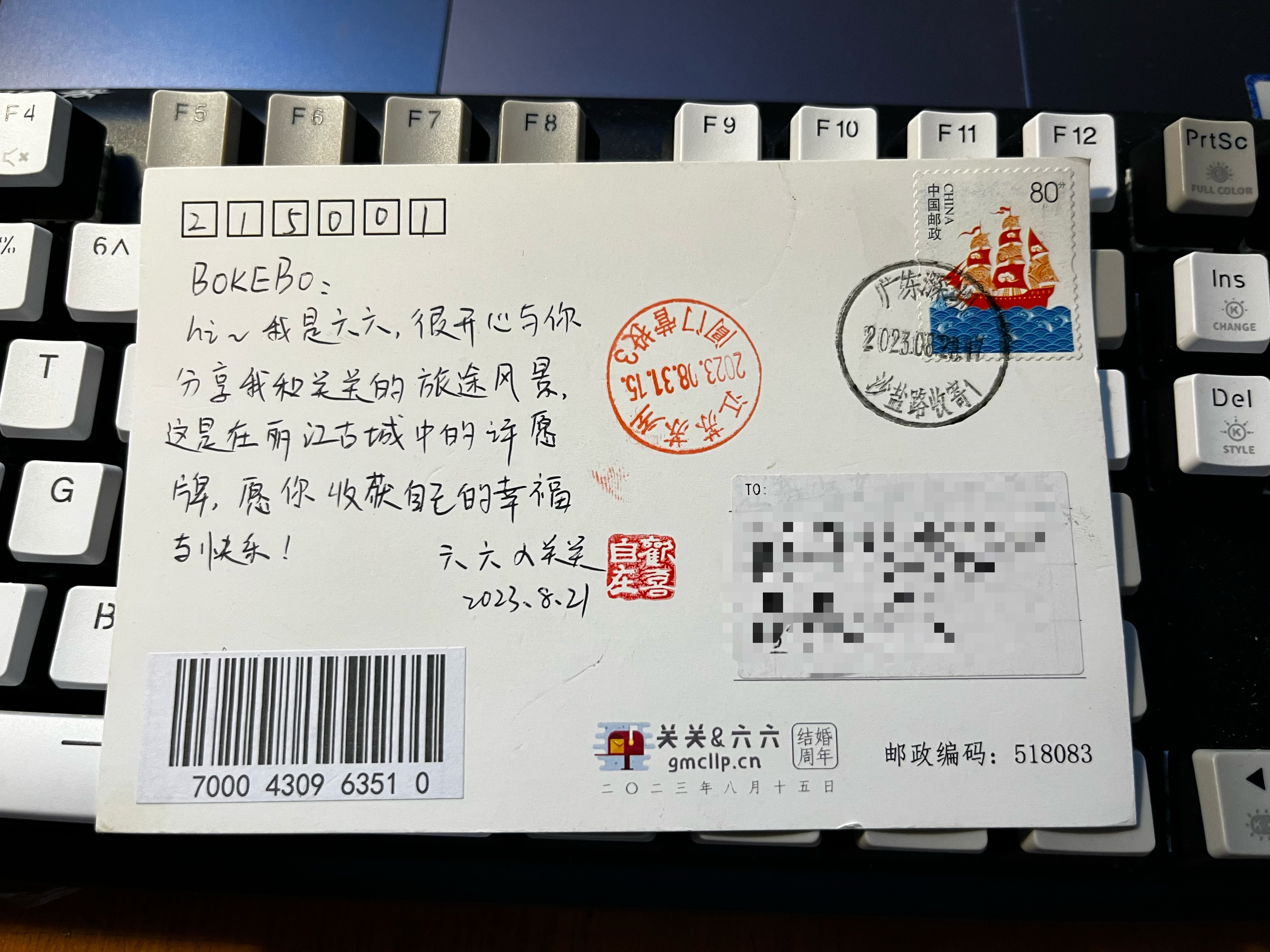 第一次收到博友的明信片,真的蛮惊喜哒。 感谢@关关&六六 地址:https://www.gmcllp.cn/685.html